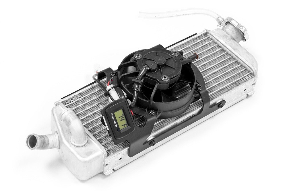 Trail Techs TTO Temperature Switching Fan Kit monitors your KTM & Husqvarnas cooling system performance and automatically activates the fan to keep engine at optimum temperature range.